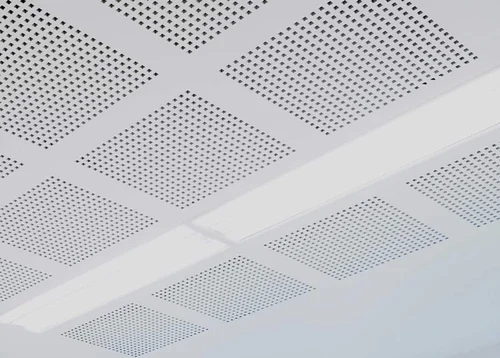 A Gypsum Acoustic Ceiling is a sound-absorbing ceiling solution made from perforated gypsum boards. It helps in reducing echo and ambient noise, making it ideal for spaces like auditoriums, offices, libraries, and multiplexes.